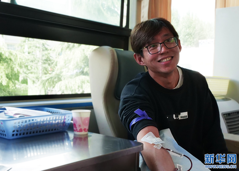 5月27日,來自北京協(xié)和醫(yī)院的援藏專家楊筱在獻血。(新華網(wǎng) 旦增努布攝)