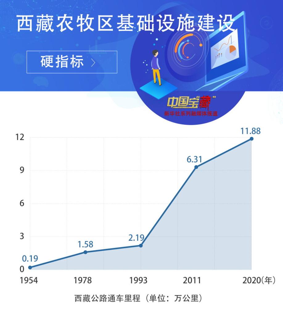 最新數(shù)據(jù)顯示,5年來,西藏農(nóng)牧區(qū)基礎(chǔ)設(shè)施建設(shè)投入547億元,農(nóng)村公路通車總里程增長(zhǎng)三成多、達(dá)到8.9萬公里,654個(gè)鄉(xiāng)鎮(zhèn)和4094個(gè)建制村通硬化路,鄉(xiāng)鎮(zhèn)、建制村通達(dá)率分別達(dá)到100%和99.96%,農(nóng)村飲水安全問題全面解決,主電網(wǎng)覆蓋所有縣城和主要鄉(xiāng)鎮(zhèn)。