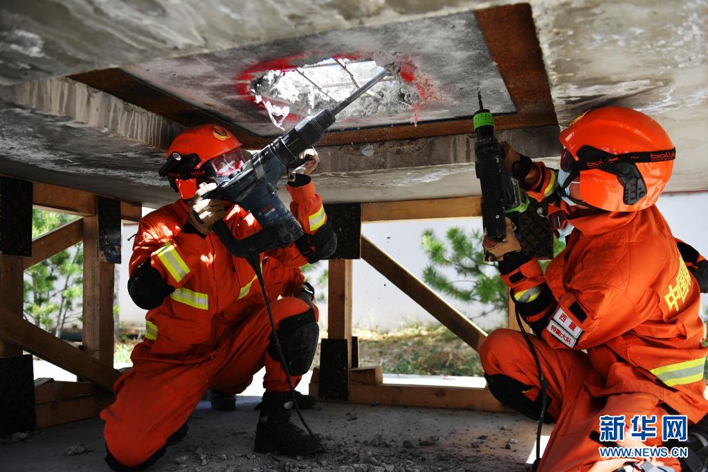 6月15日,參訓(xùn)學(xué)員進(jìn)行向上快速破拆作業(yè)實(shí)際操作展示。新華社記者 孫瑞博 攝