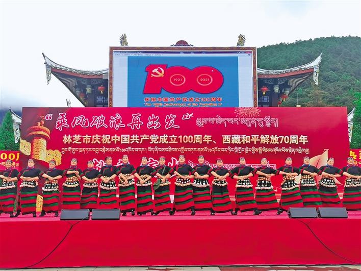 近日,“乘風(fēng)破浪再出發(fā)”——西藏自治區(qū)林芝市慶祝中國(guó)共產(chǎn)黨成立100周年、西藏和平解放70周年獻(xiàn)禮演出在福建公園隆重舉行。演出通過歌舞、情景表演、相聲、團(tuán)體操等形式,表達(dá)了各族人民感黨恩、聽黨話、跟黨走的真摯情感?!?/p>