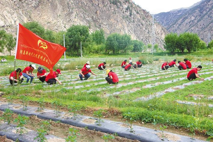 圖為西藏自治區(qū)林芝市朗縣新時代文明實踐志愿服務(wù)隊來到洞嘎鎮(zhèn)達木村,幫助當(dāng)?shù)卮迕窀赊r(nóng)活。