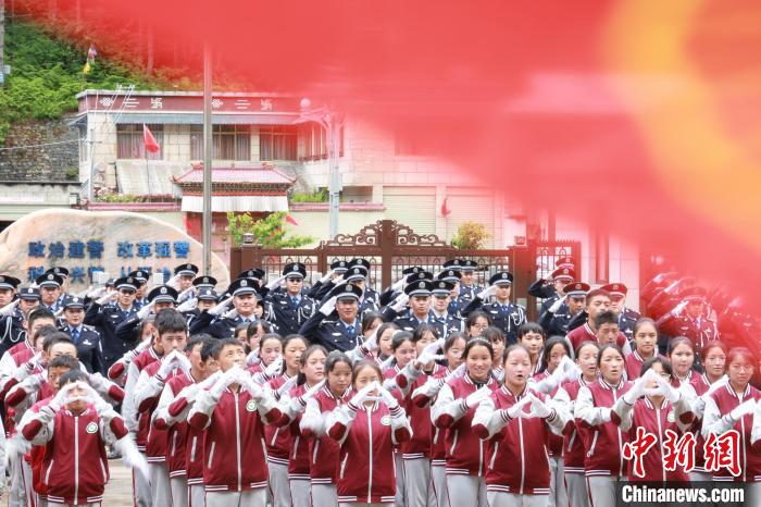 圖為色邊境派出所移民管理警察在邊境山口開展向黨旗宣誓活動。山南邊境管理支隊供圖