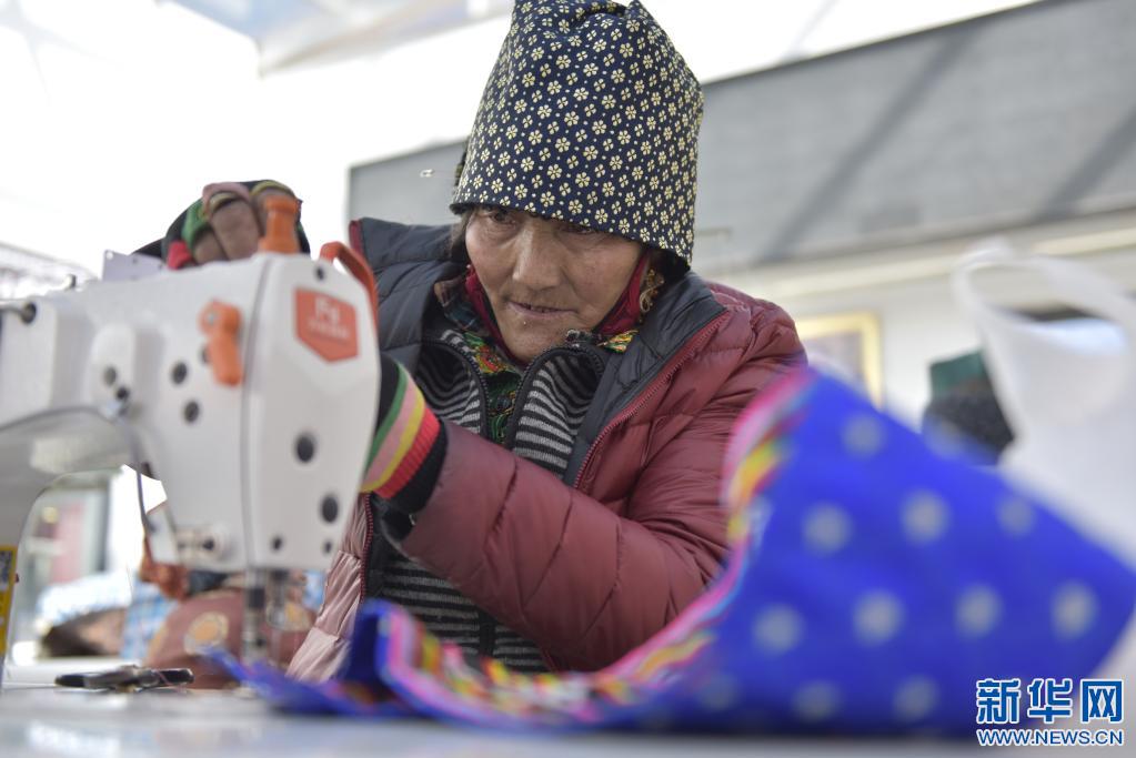 在民族服裝縫紉制造農民專業(yè)合作社里,拉卓正在縫制產品(2021年2月2日攝)。 新華社記者田金文 攝