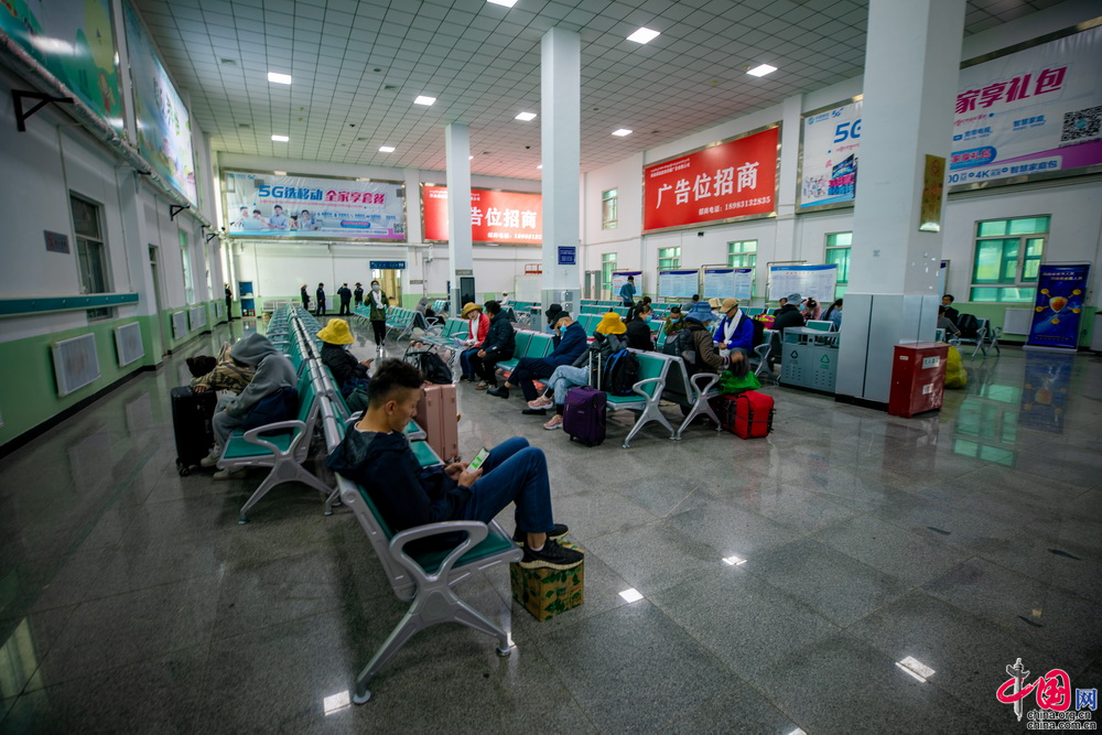 那曲站站臺規(guī)模為2個(gè)站臺8條線路,其中客運(yùn)3條,貨運(yùn)5條。每天到發(fā)旅客列車有8對16趟??土鞲叻迤?,比如說五一節(jié)假日期間日均到發(fā)旅客達(dá)3800余人。中國網(wǎng)記者 鄭亮攝