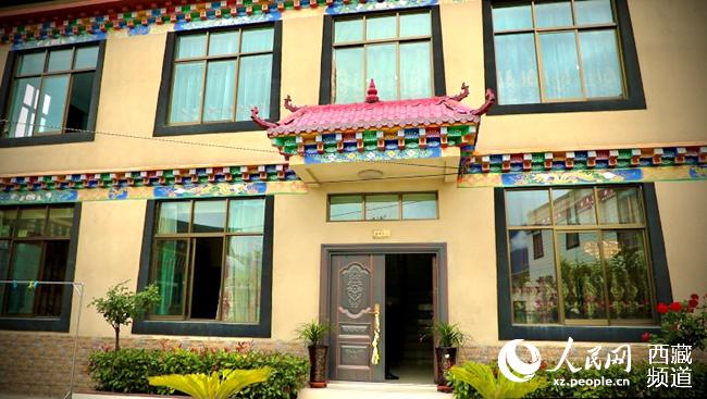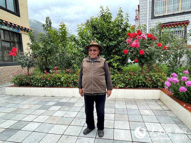 村道整潔平坦,藏式小樓特色十足,家家戶戶飄出花香果香……走進巴吉村,殷實富足的氣息隨處可見。沿著村道一路向里,看到一棟紅瓦黃墻的二層小樓,門口的牌子上寫著“光榮之家”,這就是達龍老人的家。
