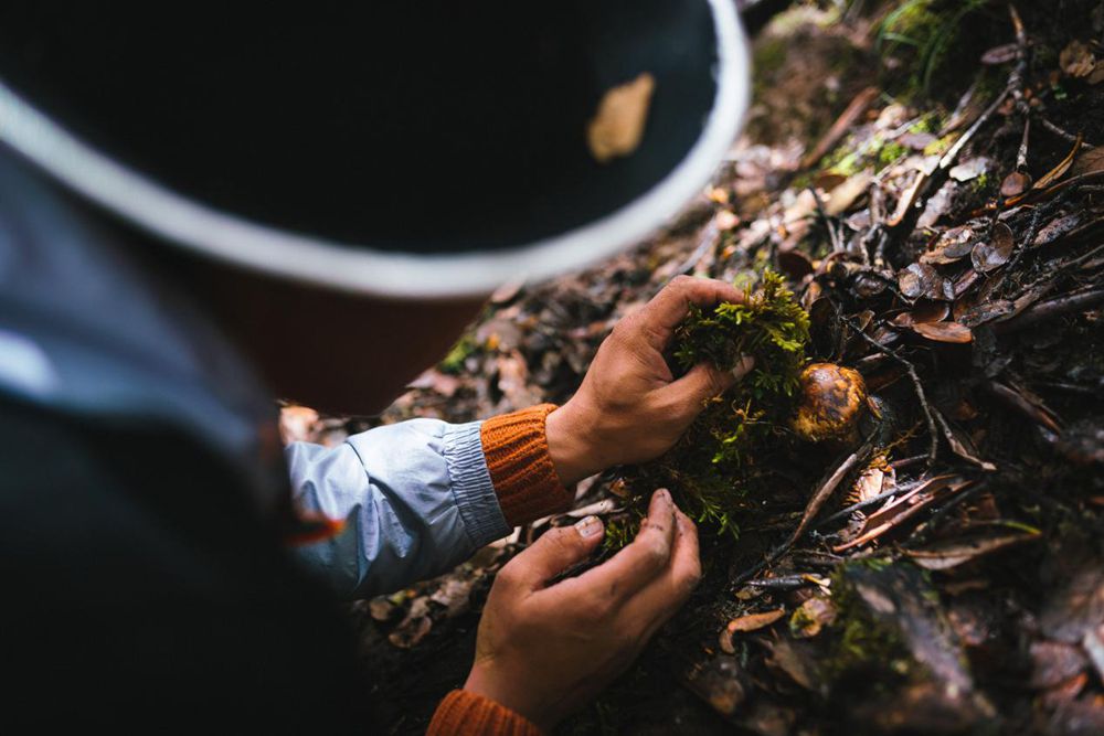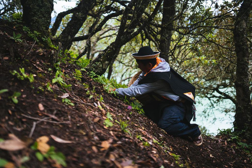 發(fā)現(xiàn)松茸,輕輕將其摘下。圖片由林芝市松茸協(xié)會(huì)提供