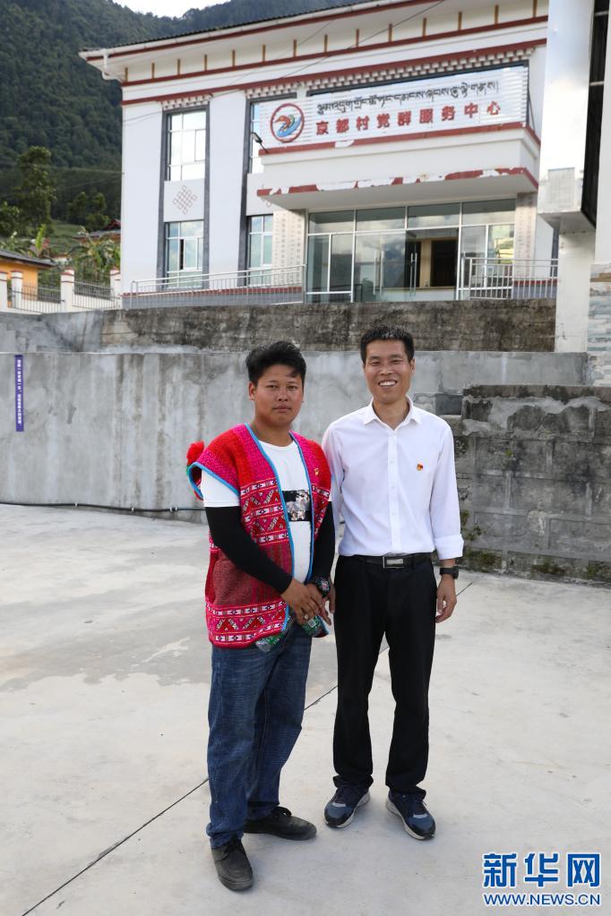 京都村黨支部書記廖澤路(左)和駐村工作隊負責人徐俊杰合影(7月22日攝)。新華社記者 金立旺 攝