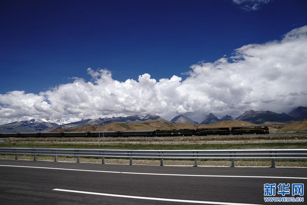 列車行駛在青藏鐵路拉薩市當(dāng)雄縣境內(nèi)(2021年6月28日攝)。新華社記者 劉洪明 攝