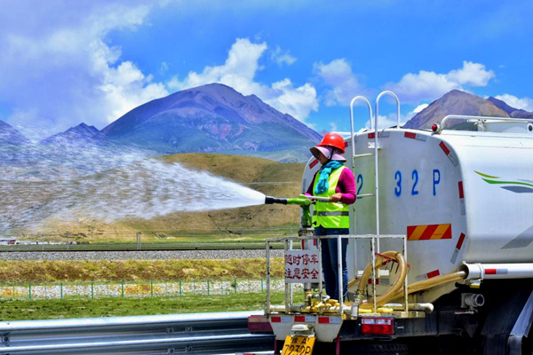 “在高原上種花種草太難了,比照顧孩子還要悉心?!焙笃诠茏o(hù)工人周玉娟說。