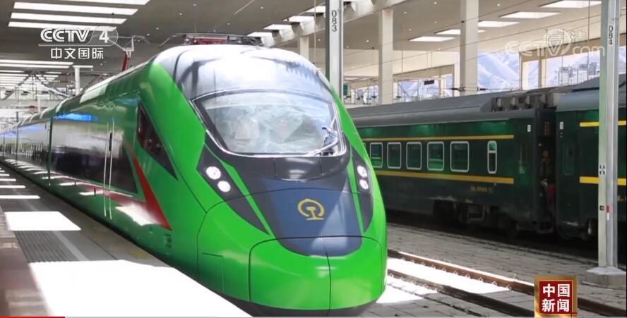 總臺(tái)央視記者 宋達(dá):我現(xiàn)在乘車來到拉林鐵路的林芝站。今年6月25日,拉林鐵路正式開通運(yùn)營,這標(biāo)志著川藏鐵路的建設(shè)取得了重大進(jìn)展,也意味著復(fù)興號(hào)首次駛上了青藏高原,結(jié)束了藏東南地區(qū)不通鐵路的歷史。我們可以看到拉林鐵路的復(fù)興號(hào)列車被設(shè)計(jì)成了綠色的外觀,有人形象地把它說成“綠巨人”。