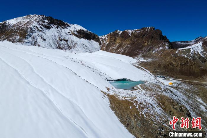 圖為廓瓊崗日冰川的半山湖泊。江飛波 攝