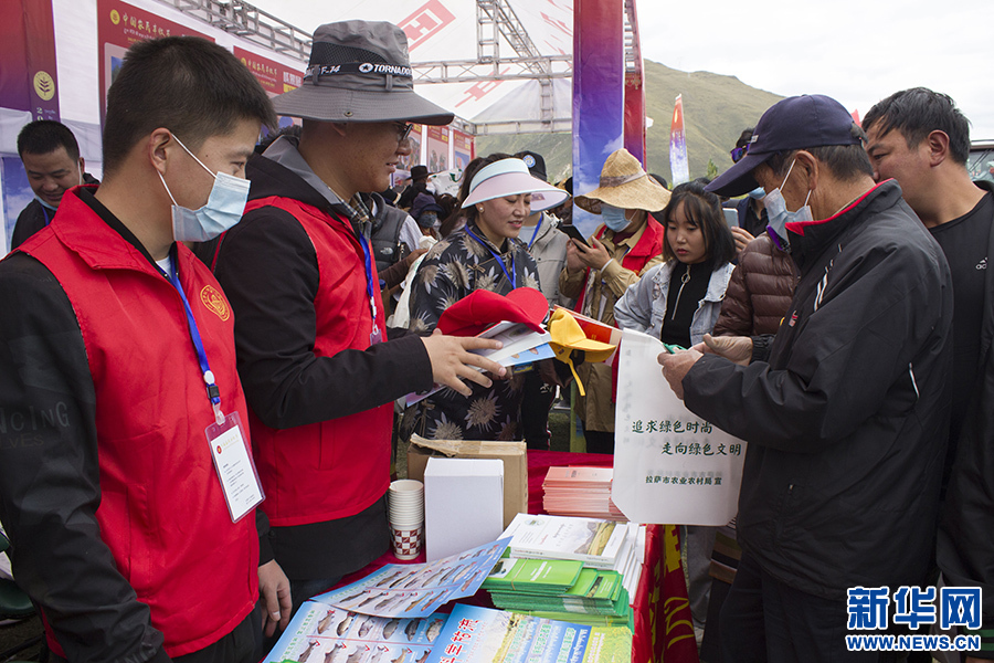 9月23日,工作人員現(xiàn)場(chǎng)發(fā)放農(nóng)牧業(yè)科技知識(shí)宣傳冊(cè)。新華網(wǎng) 達(dá)次 攝