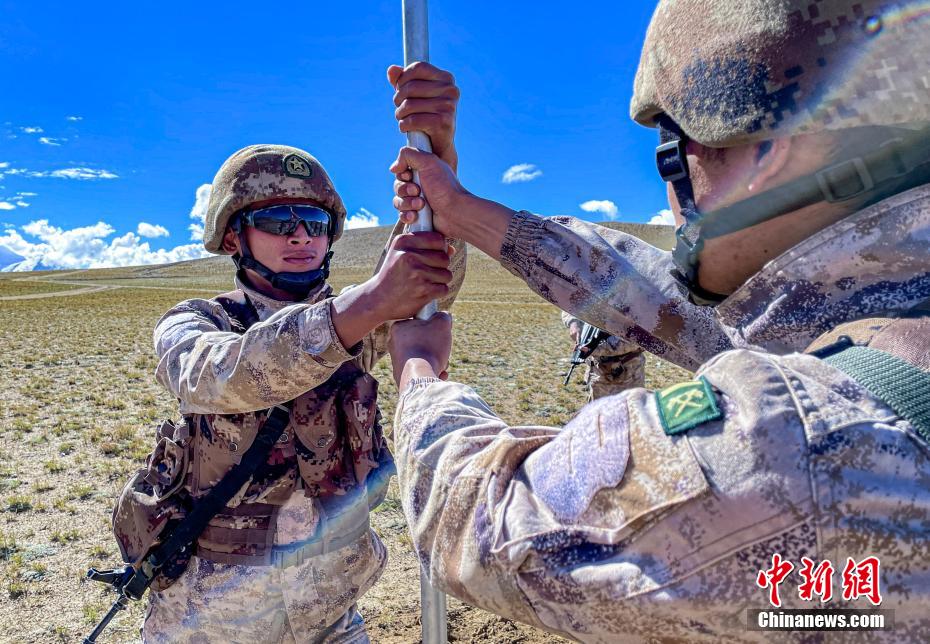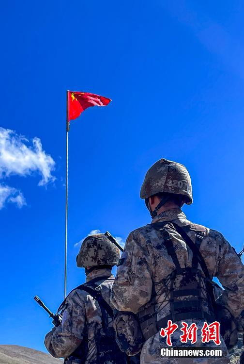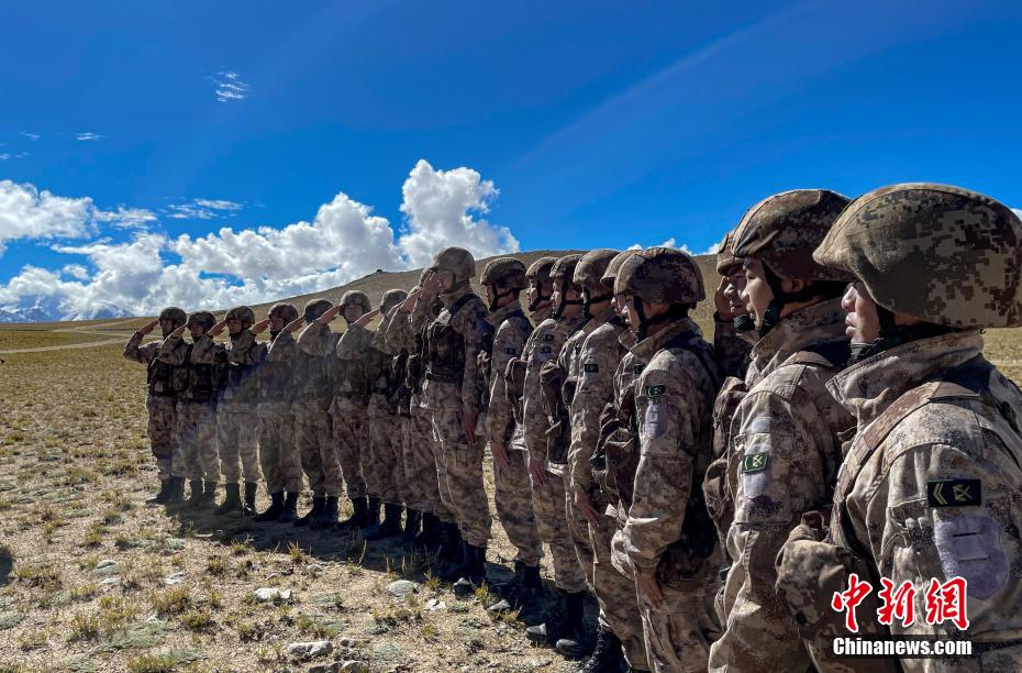 10月1日,西藏軍區(qū)某旅駐守在海拔4800米的任務(wù)分隊(duì)官兵組織升國(guó)旗儀式慶祝國(guó)慶節(jié)到來(lái)。高原戰(zhàn)士用最特別的方式,向偉大祖國(guó)表達(dá)熱愛(ài)。王述東 攝