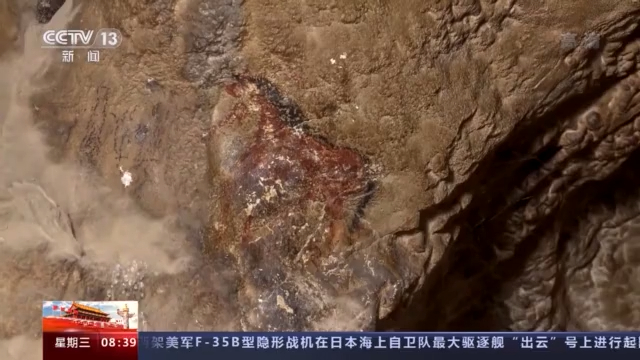 總臺記者 陳琴:現(xiàn)在我們就來到納木錯環(huán)湖科考巖畫調(diào)查點的1號點,您看到這個巖畫是由紅色的赭石這個顏料做成的,看起來特別像一只可愛的小鳥。