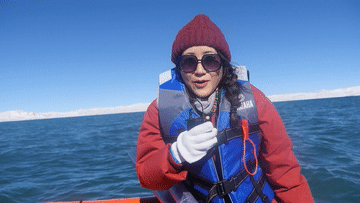 大家好,我是新華社記者董琳娜,我現(xiàn)在是在青藏高原格拉丹東的雀莫錯(cuò)上。這里的海拔是5000米左右,現(xiàn)在戶外的溫度是零下10攝氏度左右??蒲腥藛T是要采雀莫錯(cuò)的水樣。我們?cè)?2點(diǎn)之前要把水樣采完,否則風(fēng)浪會(huì)非常大,給我們的工作帶來非常大的困難。