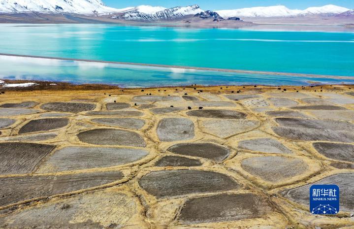 西藏自治區(qū)那曲市尼瑪縣當(dāng)穹錯(cuò)湖畔的農(nóng)田(2020年4月30日無(wú)人機(jī)拍攝)。新華社記者 田金文 攝