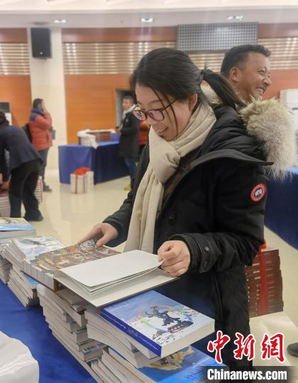 圖為《格薩爾》藏譯漢叢書首發(fā)儀式上讀者現(xiàn)場(chǎng)翻閱圖書。 趙延 攝