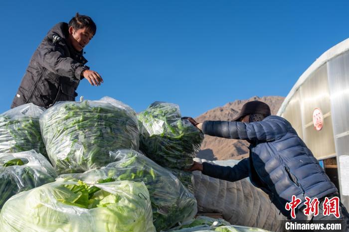 圖為當?shù)剞r(nóng)牧民轉運剛采摘的大棚蔬菜前往日喀則市區(qū)。江飛波 攝