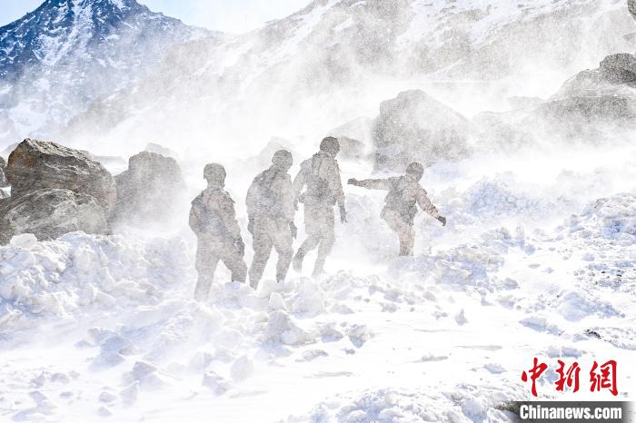 在官兵們的記憶中,最難的是大雪封山的時(shí)候,因?yàn)榈缆凡煌?,車輛無(wú)法抵達(dá)的地方,都需要腳步去丈量。大家早上6點(diǎn)就得出發(fā),在狂風(fēng)中徒步30公里左右,晚上22點(diǎn)左右才能返回?!帮L(fēng)最大的時(shí)候,腳抬起來(lái)就踩不下去,阻力很大。甚至把碎石還有山頂?shù)难┐灯饋?lái),打到臉上,即使大家戴了防護(hù)面罩和防風(fēng)眼鏡,依然抵擋不住?!敝笇?dǎo)員劉沛霖說(shuō)。