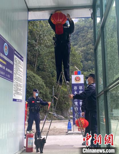 春節(jié)到來,民警把達(dá)國大橋檢查點(diǎn)裝扮一新。受訪者供圖