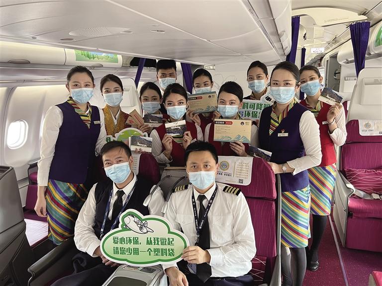 “綠色飛行”服務(wù)試運行航班機組全員。圖由西藏航空提供
