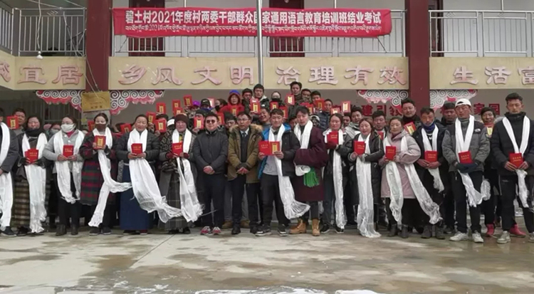 打造“領(lǐng)頭雁”,輻射帶動群眾共同進(jìn)步?!皻q歲鬧元宵,轟天鑼鼓敲”,進(jìn)一步讓“學(xué)習(xí)”之風(fēng)在基層助力“好學(xué)”之苗生根發(fā)芽,工作隊在元宵節(jié)開展“2021年度國家通用語言教育培訓(xùn)結(jié)業(yè)典禮”,從全村116名參訓(xùn)人員中評選出“學(xué)習(xí)之星”1名,“進(jìn)步之星”2名進(jìn)行表揚表彰,樹立學(xué)習(xí)榜樣,激勵對標(biāo)對表,努力學(xué)習(xí)國家通用語言文字,有利于促進(jìn)各民族交往交流交融。