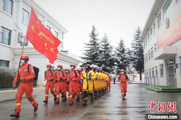 圖為消防員集結(jié)出發(fā)。索朗旺久 攝