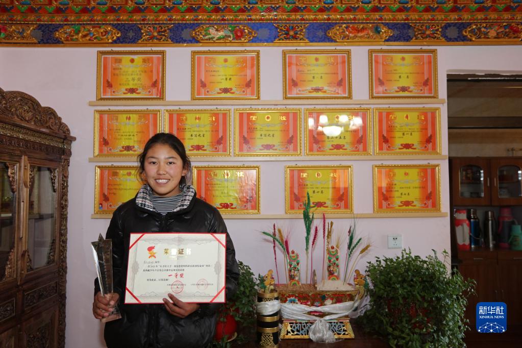 在達(dá)瓦堅參的內(nèi)心,最令他得意的不是收入的連年增加,而是兒女們沉甸甸的獎狀。女兒普巴拉姆獲得數(shù)學(xué)競賽一等獎,兒子普布次仁短跑獲得第二名……一張張獎狀掛滿整面墻壁。