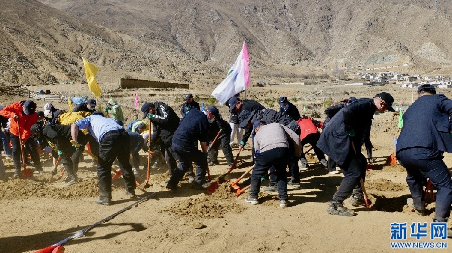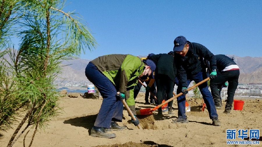 3月15日,西藏銀行員工正在進(jìn)行植樹(shù)比賽。新華網(wǎng) 柑丹鴦琦 攝