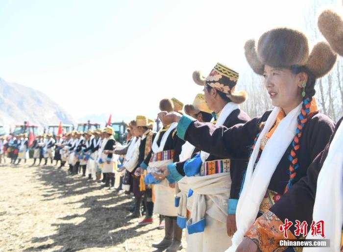 3月16日,西藏拉薩迎來(lái)一年一度盛大的傳統(tǒng)春耕儀式。按照藏歷傳統(tǒng),當(dāng)?shù)卮迕裆碇?jié)日盛裝,家家戶戶端著自家的“切瑪”(象征五谷豐登)聚集在田頭,互敬青稞酒,開(kāi)始撒種,祈福一年的豐收。圖為西藏拉薩市曲水縣茶巴朗村,村民身著盛裝舉行傳統(tǒng)春耕儀式。 中新社記者 貢嘎來(lái)松 攝