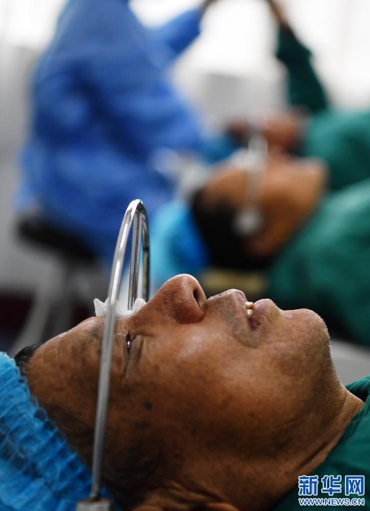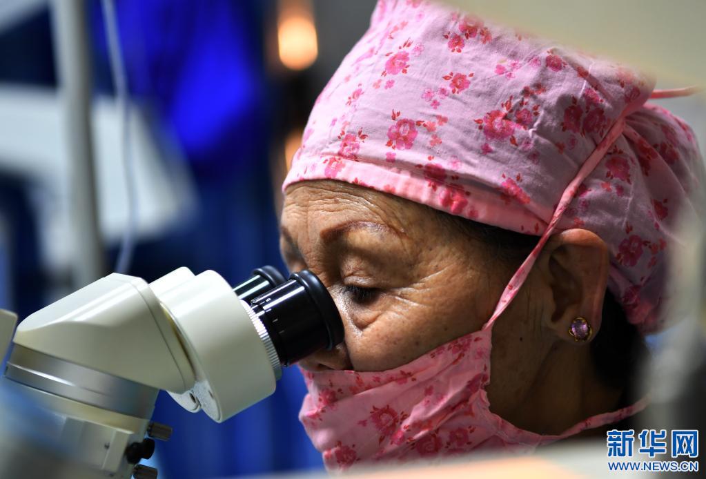 3月24日,藏族眼科專家卓嘎給患者實施復明手術(shù)。新華社記者 覺果 攝