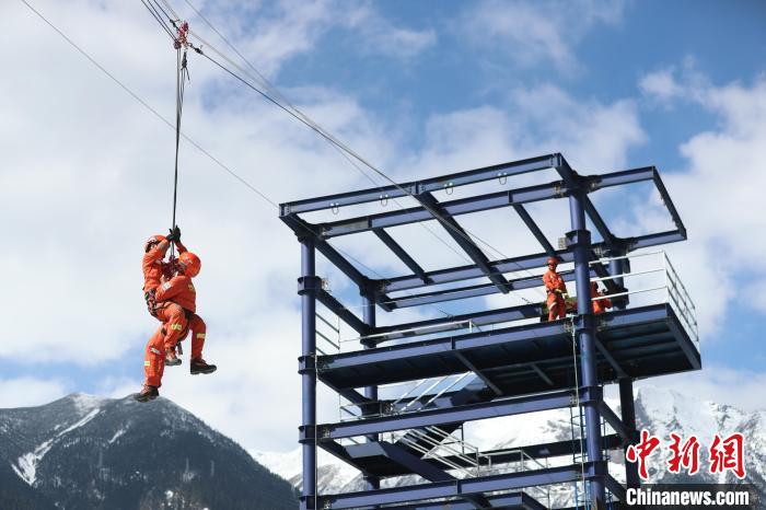 圖為消防指戰(zhàn)員正在進(jìn)行橫渡訓(xùn)練。 林芝市森林消防支隊(duì) 攝