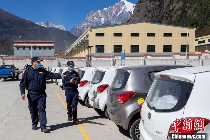 圖為拉薩海關(guān)關(guān)員在吉隆口岸出口貨物查驗(yàn)場(chǎng)監(jiān)管出口國(guó)產(chǎn)電動(dòng)車。資料圖 拉薩海關(guān)供圖