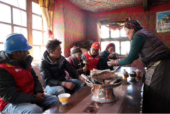 帳篷里大家圍坐在一起,喝著熱氣騰騰的酥油茶,熱情的讓卓不停地向服務(wù)隊(duì)隊(duì)員獻(xiàn)上脆脆的風(fēng)干肉,有說有笑。讓卓85歲的老奶奶瑪姆也湊起熱鬧聊家常,即使聽力有些下降,但聊到用電給生活帶來的改變時,老奶奶笑著用流利的藏語說“黨的政策好??!”