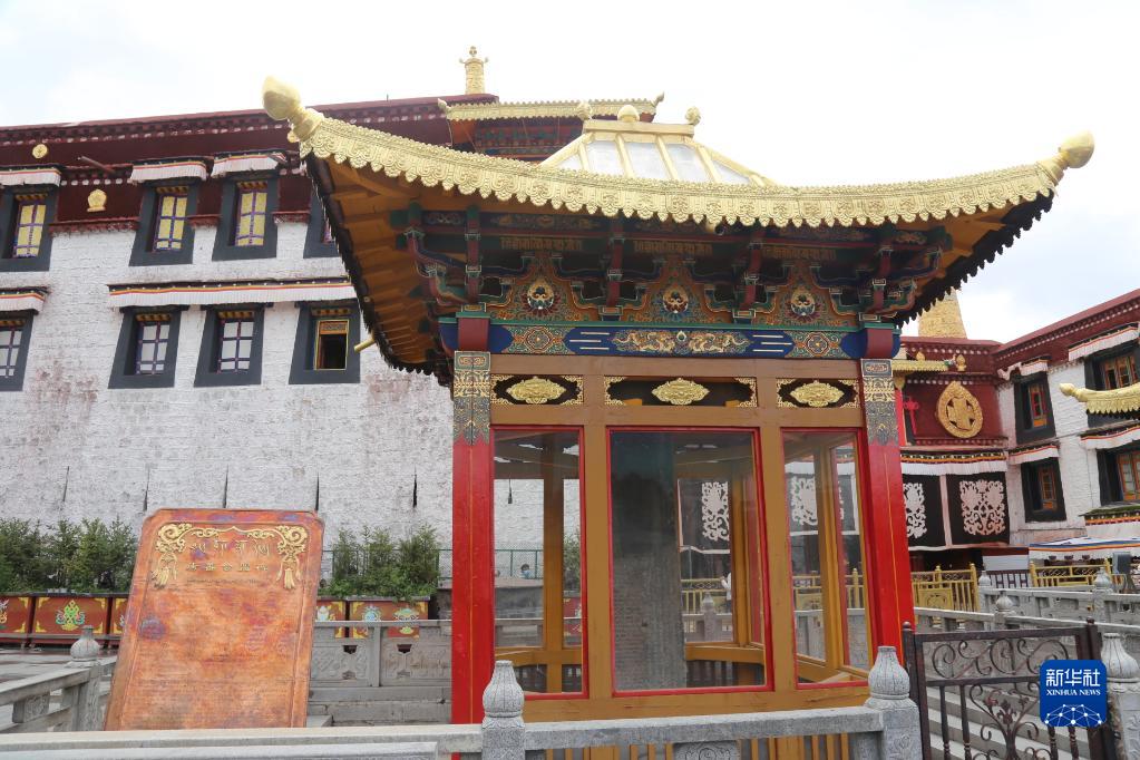 這是位于大昭寺門(mén)前的唐蕃會(huì)盟碑(2021年8月16日攝)。新華社記者 張兆基 攝