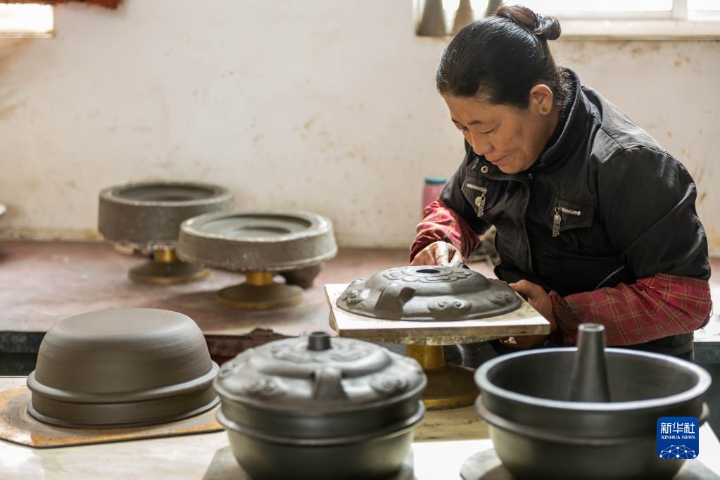這是在昌都市察雅縣的產(chǎn)業(yè)車間加工完成的器皿(4月8日攝)。新華社記者 周荻瀟 攝