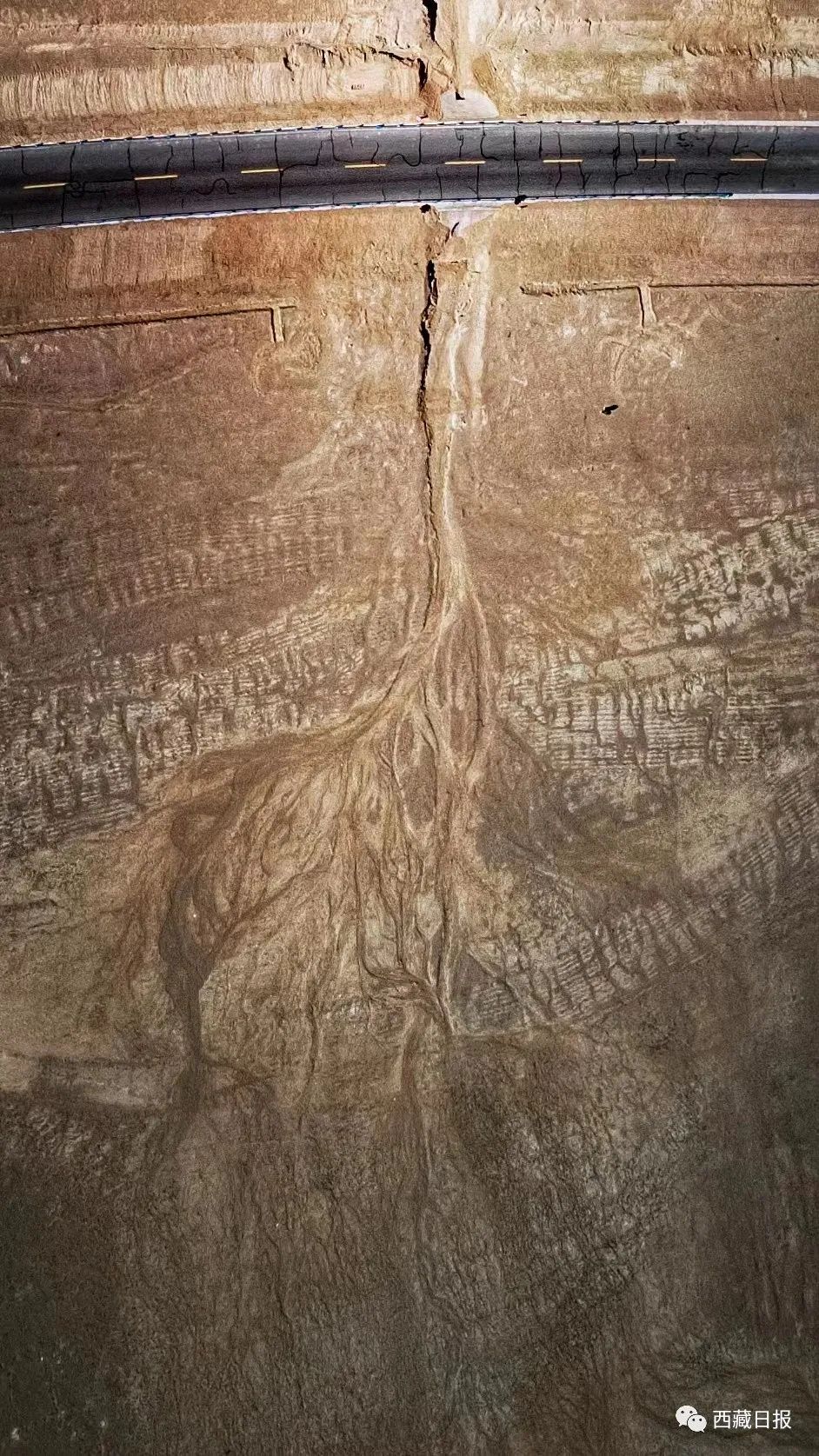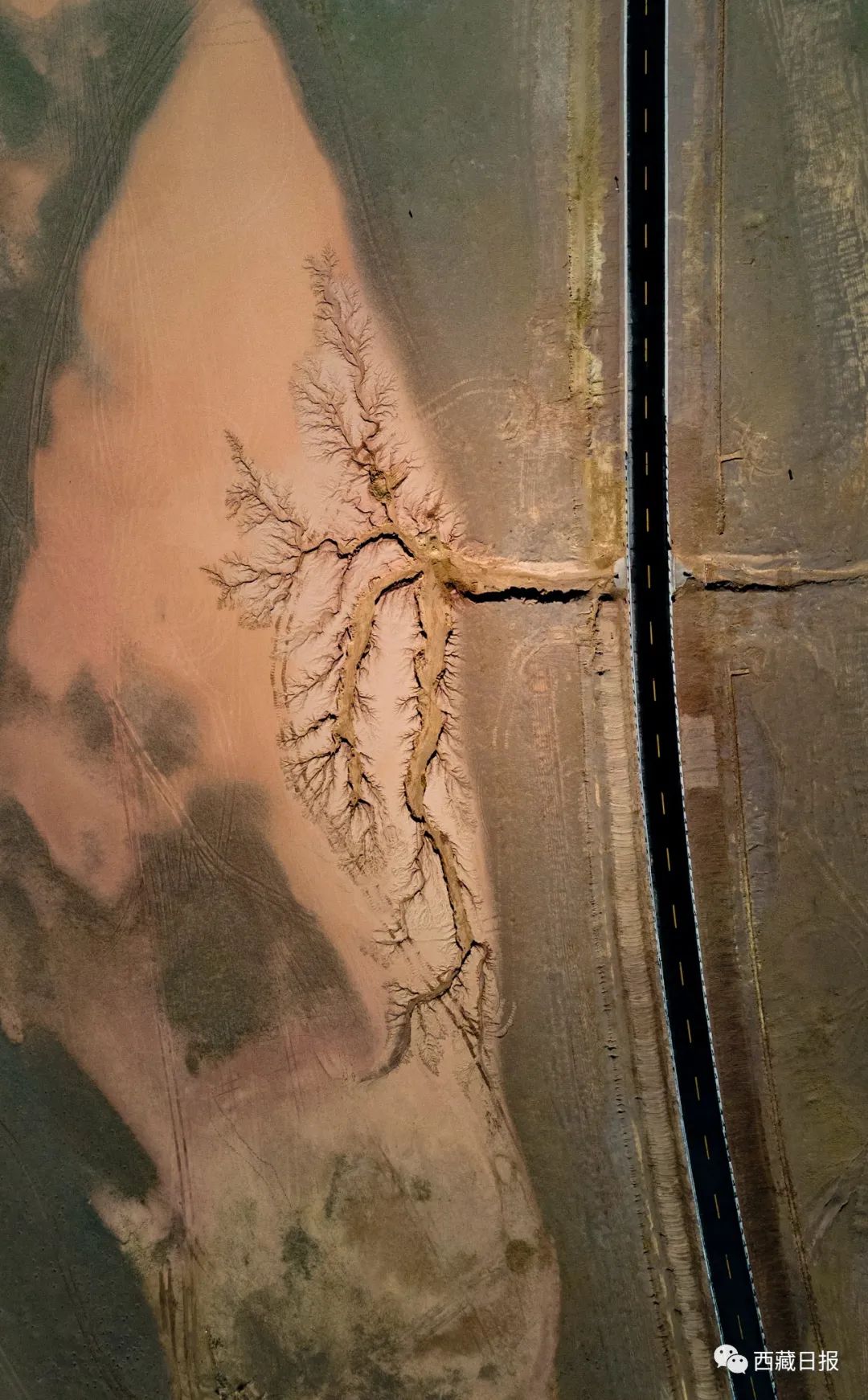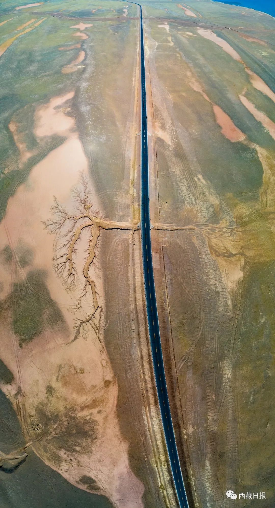位置:“大地之樹(shù)”位于達(dá)則措南,距離尼瑪縣城30公里處,國(guó)道317 (2442)里程石墩旁邊。這棵大地之樹(shù)的樹(shù)干在國(guó)道南側(cè),樹(shù)根在國(guó)道北側(cè)。