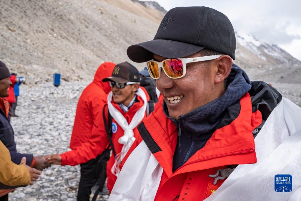 珠峰科考登頂工作小組組長德慶歐珠返回大本營(5月5日攝)。新華社記者 孫非 攝