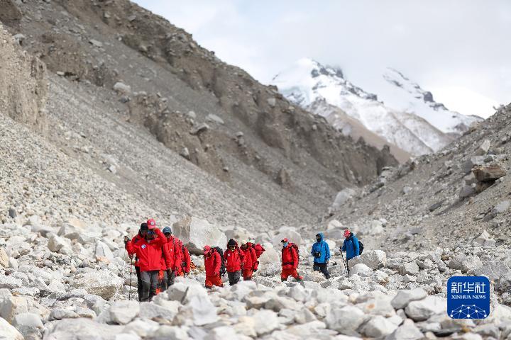 科考隊(duì)員正在返回大本營(5月5日攝)。新華社記者 姜帆 攝
