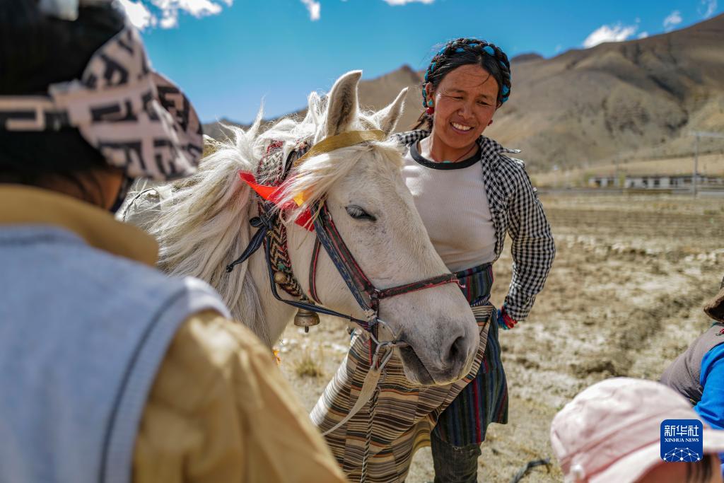 西藏定日縣扎西宗鄉(xiāng)日白拉新村的村民在做播種前的準(zhǔn)備(5月10日攝)。新華社記者 姜帆 攝