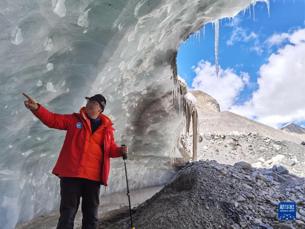 中國科學(xué)院西北生態(tài)環(huán)境資源研究院副院長康世昌在珠峰東絨布冰川區(qū)域考察(5月8日攝)。新華社發(fā)