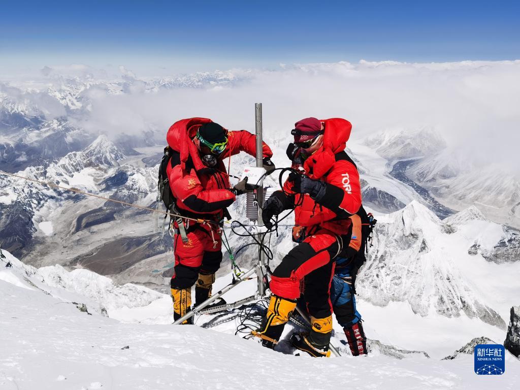 5月4日,德慶歐珠帶領(lǐng)的登頂小組科考隊員,在珠峰海拔8830米處架設(shè)世界海拔最高自動氣象站,建成珠峰梯度氣象觀測體系;在峰頂首次利用高精度雷達(dá)測量冰雪厚度,并采集了峰頂冰雪樣品。