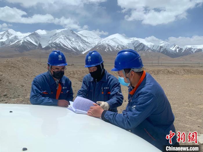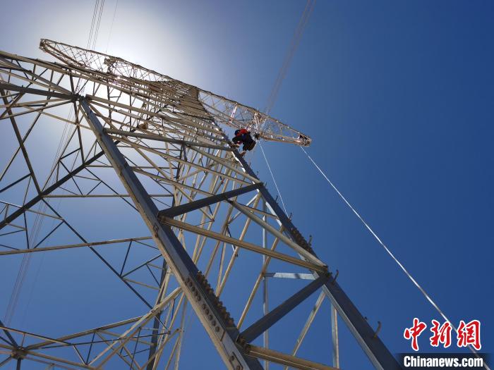 圖為國網(wǎng)青海超高壓公司輸電運檢人員在海拔4700米以上的高原檢修“電力天路”。國網(wǎng)青海超高壓公司供圖