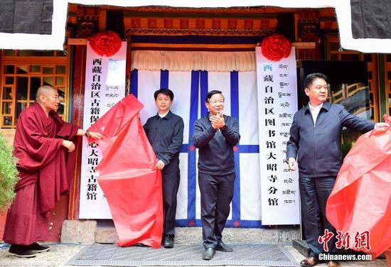 西藏自治區(qū)圖書(shū)館大昭寺分館和自治區(qū)古籍保護(hù)中心大昭寺古籍館26日正式揭牌。這是繼拉薩哲蚌寺之后,又一座寺廟建立分館。