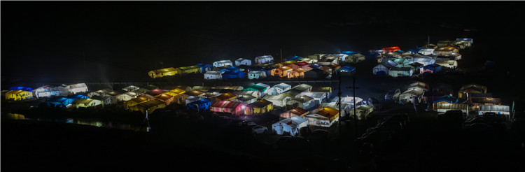 西藏那曲市比如縣良曲鄉(xiāng)然木塘村蟲草采集點的夜晚(5月25日攝)。新華社記者 姜帆 攝