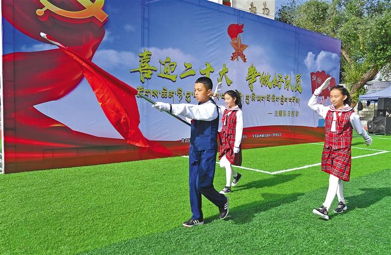 拉薩市第一小學(xué)舉行“喜迎二十大、爭(zhēng)做好隊(duì)員”少先隊(duì)員入隊(duì)儀式。記者 李 攝