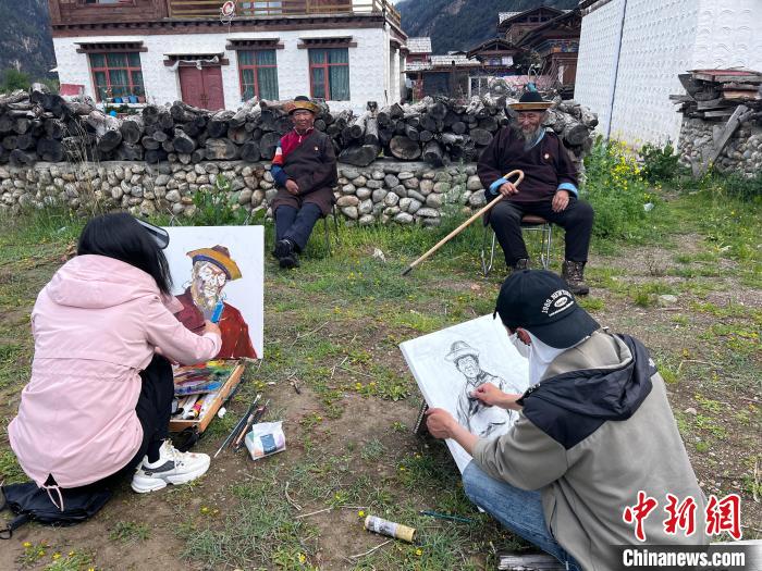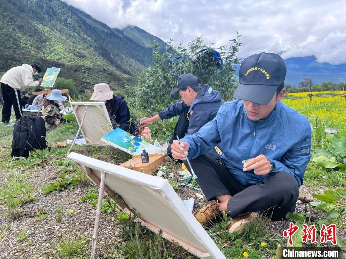 圖為西藏大學(xué)藝術(shù)學(xué)院的學(xué)生正在戶外寫生。共青團(tuán)西藏自治區(qū)委員會(huì)供圖