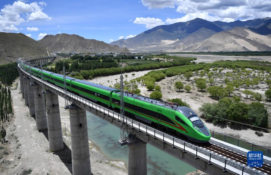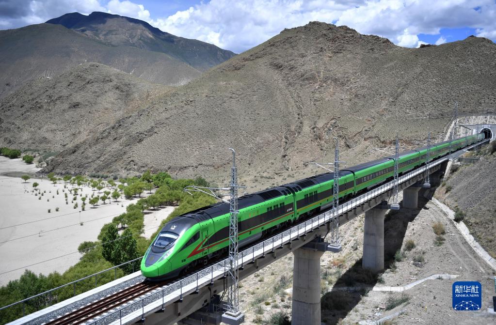 6月22日,復(fù)興號(hào)列車行駛在西藏山南境內(nèi)。新華社記者 覺果 攝