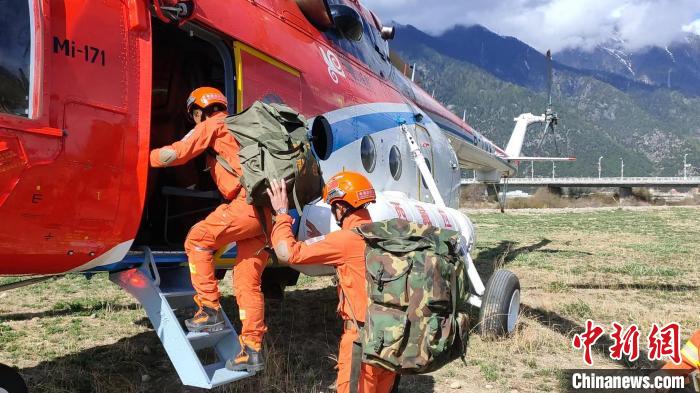 圖為消防救援人員準(zhǔn)備進(jìn)行攜裝機(jī)降。西藏森林消防總隊(duì)林芝支隊(duì) 供圖