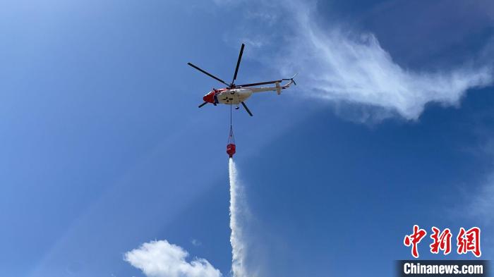 圖為演練現(xiàn)場(chǎng),直升機(jī)吊桶取水作業(yè)。西藏森林消防總隊(duì)林芝支隊(duì) 供圖